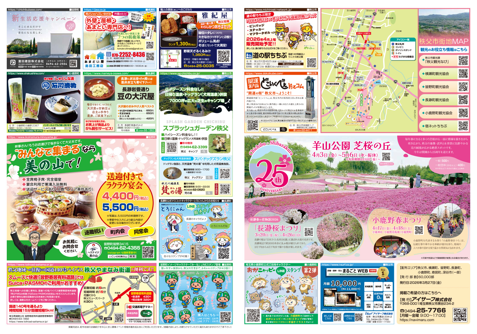 秩父市、横瀬町、皆野町、長瀞町、小鹿野町、寄居町、深谷市(一部)